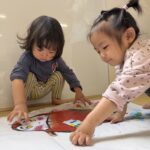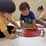 「めめー」「ほっぺー」と言葉にしながらシールを貼る姿に成長を感じ、ほっこりした時間となりました♡