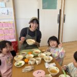 給食の時間では、「おいしいね」「いっぱい食べたね」と声を掛けてもらいながらいつも以上に食が進む子も多く笑顔あふれる賑やかな時間となりました!